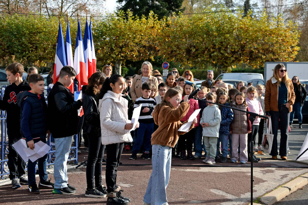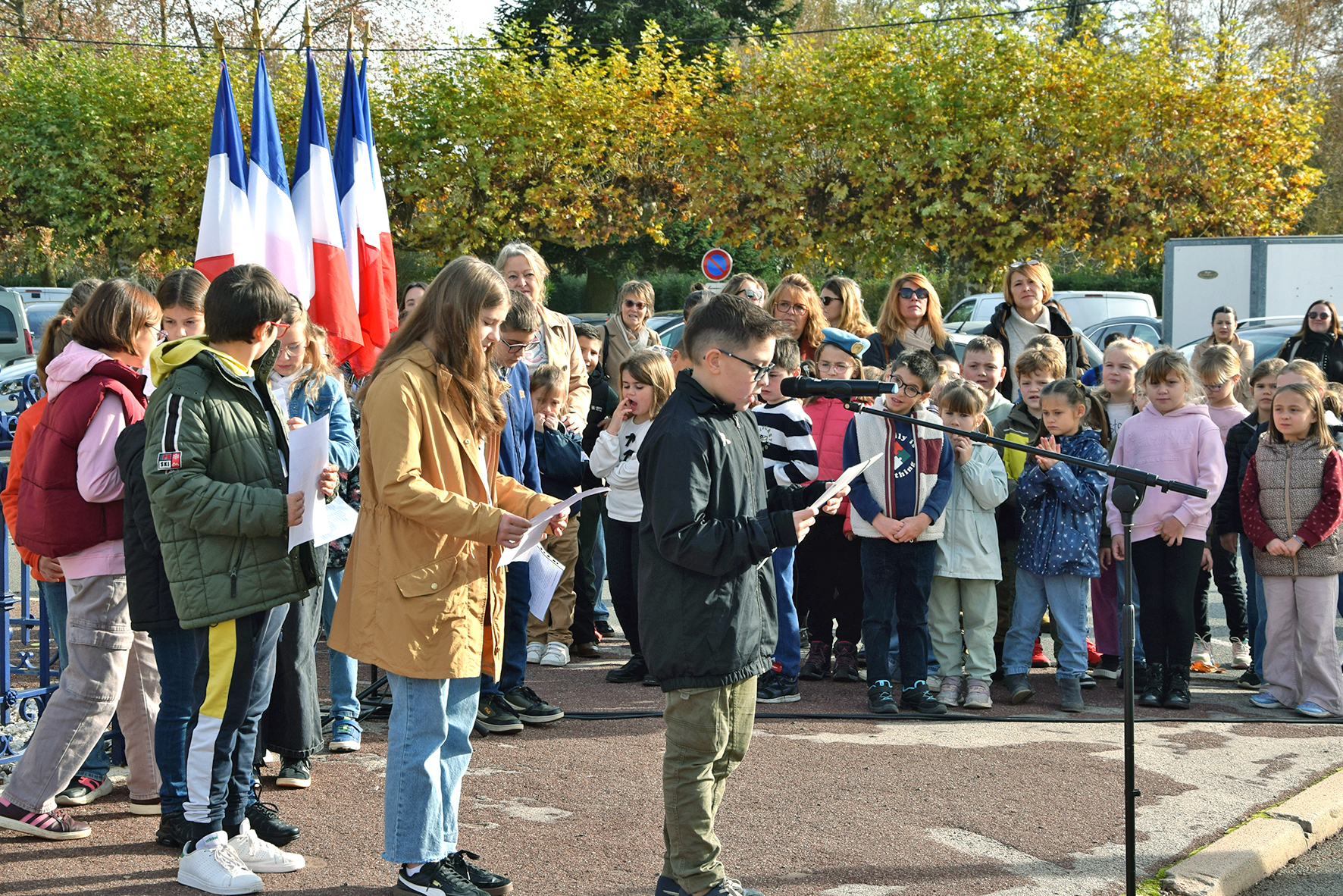 Les écoliers de Lucie Aubrac ont ouvert les temps forts de la cérémonie en lisant un manifeste commémoratif, suivi d’une interprétation poétique du texte Imagine de John Lennon par les écoliers de René Picard et du texte L’inoubliable (Henry-Jacques, La symphonie héroïque, Les Belles Lettres, 1921) par les écoliers de Jean Régnier. Leur prestation, saluée par l’assistance, a rappelé l’importance de transmettre les valeurs de paix aux générations futures.