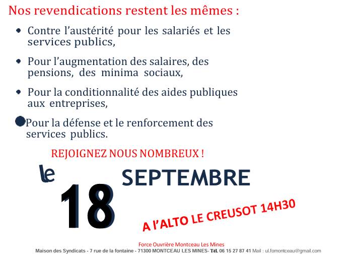 L’union locale FO de Montceau-les-Mines donne rendez-vous ce jour-là à l’Alto au Creusot à 14h30.