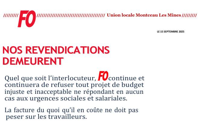 L’union locale FO de Montceau-les-Mines donne rendez-vous ce jour-là à l’Alto au Creusot à 14h30.