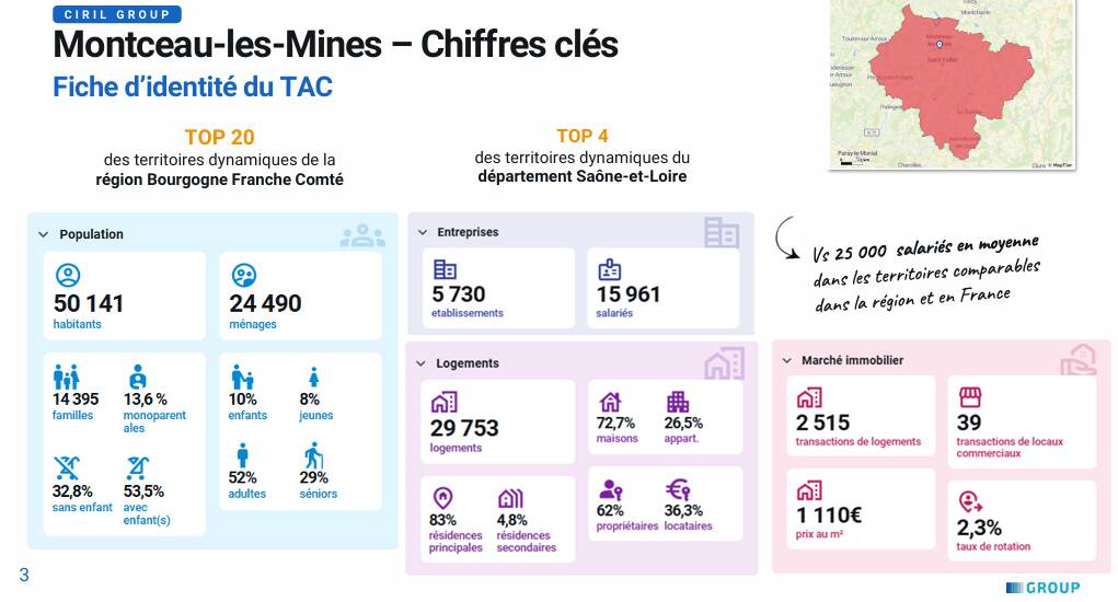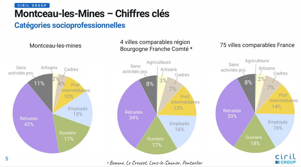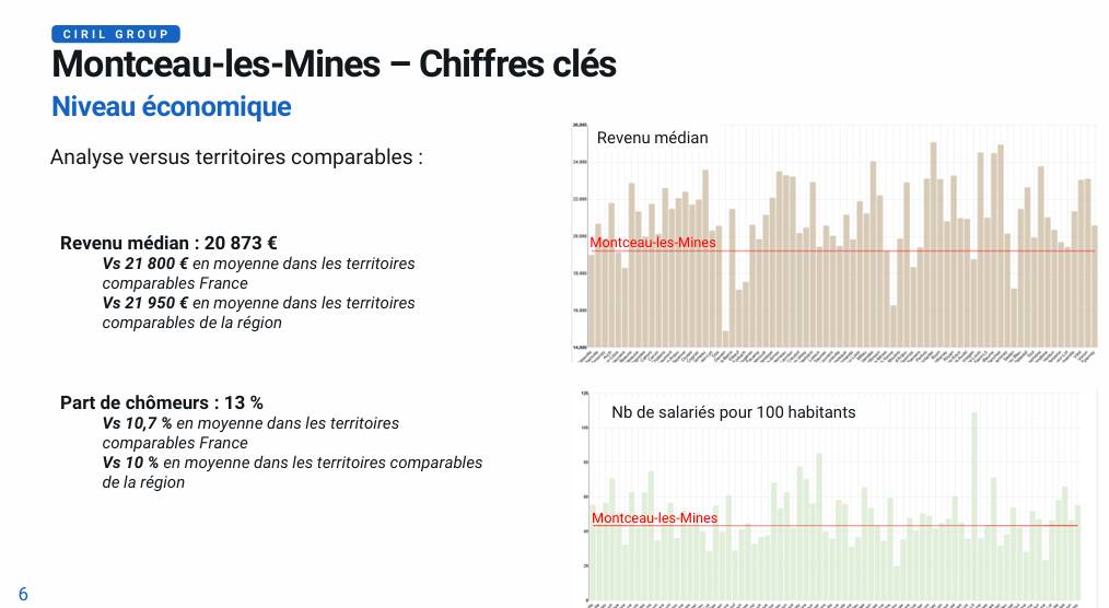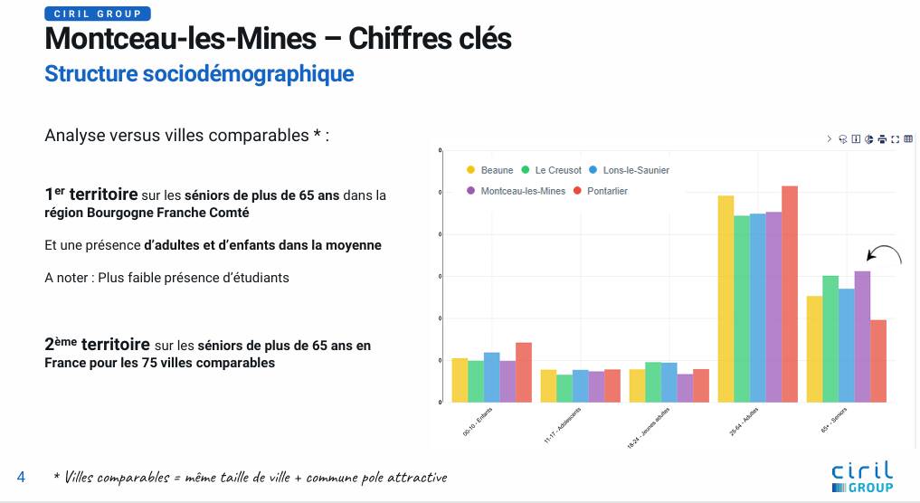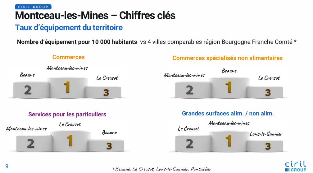 L’étude positionne Montceau-les-Mines de manière compétitive par rapport à des villes comparables telles que Beaune, Le Creusot, Lons-le-Saunier et Pontarlier. Les chiffres parlent d’eux-mêmes :