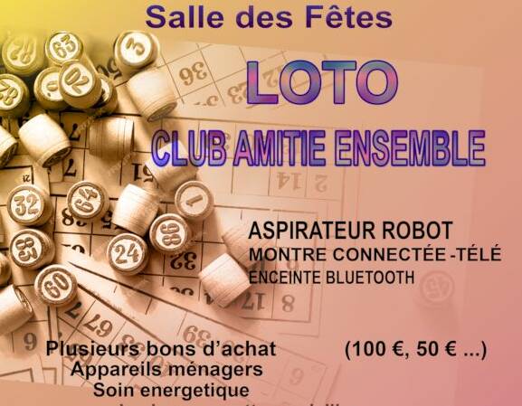 Le loto annuel organisé par le club Amitié Ensemble ce dimanche 16 novembre 2025 à la salle des fêtes de Saint-Romain-sous-Gourdon. Rendez-vous à partir de 13h et lancement de la première partie à 14h. A gagner, des bons d’achat mais pas seulement, à Saint-Romain-sous-Gourdon on aime bien faire gagner des lots…