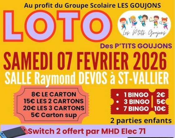 Saint-Vallier – Loto des P’tits Goujons, samedi 7 février