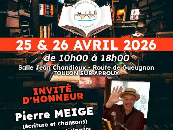 Les Ripailles du Pont du Diable organisent le 5eme salon du livre les 25 et 26 avril 2026 à la salle Jean Chandioux de Toulon-sur-Arroux. L’invité d’honneur est Pierre MEIGE écrivain et musicien ayant travaillé avec plusieurs musiciens et chanteurs célèbres. Il sera accompagné d’une trentaine d’exposants dont une vingtaine…