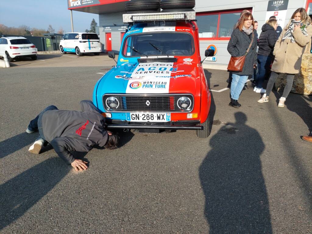Ils ont travaillé d’arrache-pied jusqu’à la dernière minute. « Dimanche soir, nous étions sur les rotules » confie Zoé. « Encore ce matin, un clignotant ne fonctionnait plus et au dernier moment, nous avons dû trouver des pneus, les roues de secours, les mêmes qui sont sur la voiture. C’est dans le règlement » dit-elle soulagée avant de partir. Deux filtres manquaient à l’appel. Ils sont arrivés comme par enchantement une heure avant de prendre la route. Ouf !