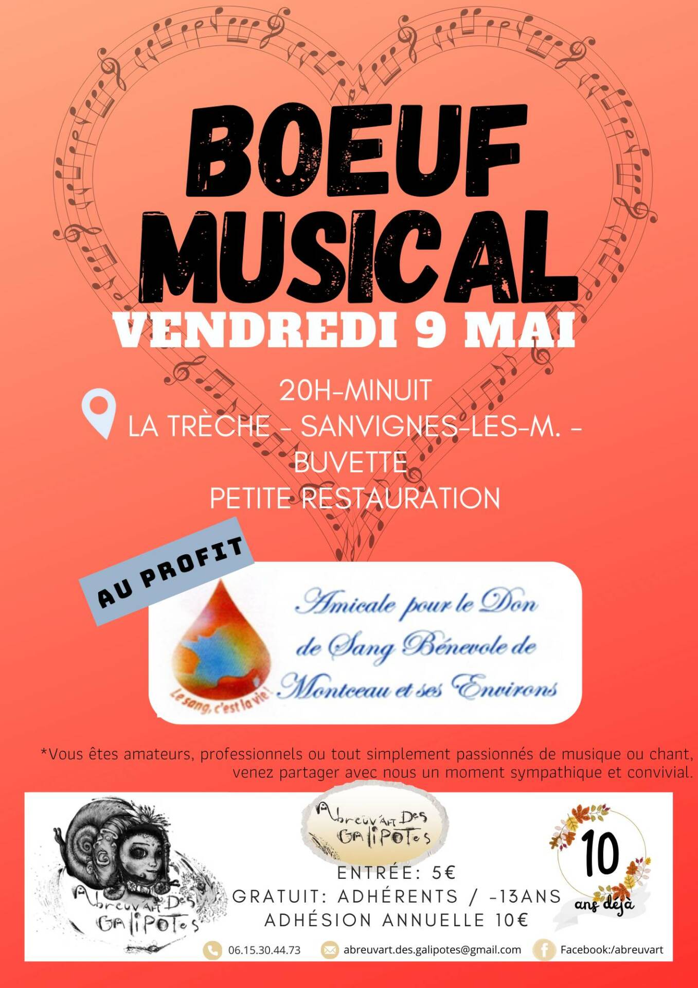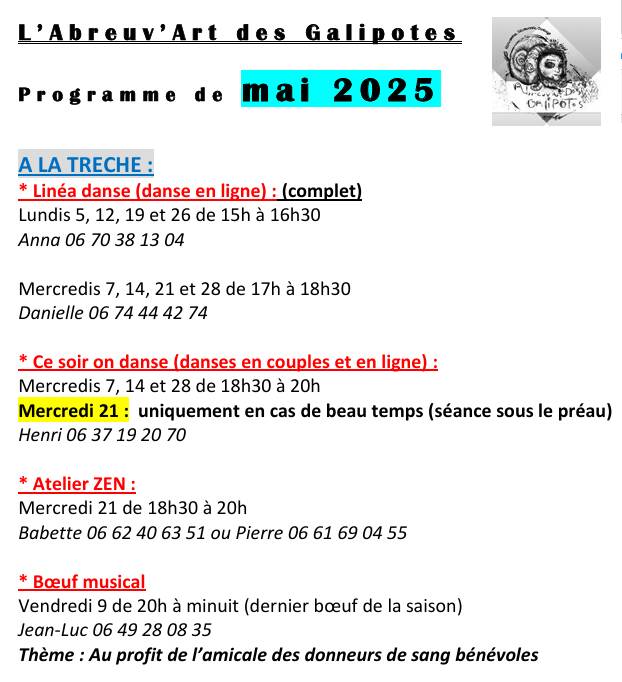 L’association l’Abreuv’art des Galipotes est une véritable mine d’or pour la commune de Sanvignes tant elle propose d’animations. Le mois de mai est aussi riche que le précédent et sera marqué par le dernier boeuf musical de la saison, vendredi 9 mai 2025 avant de laisser se reposer les musiciens et danseurs. Un ultime boeuf au profit cette fois-ci de l’amicale pour le don de sang bénévole de Montceau et ses environs.