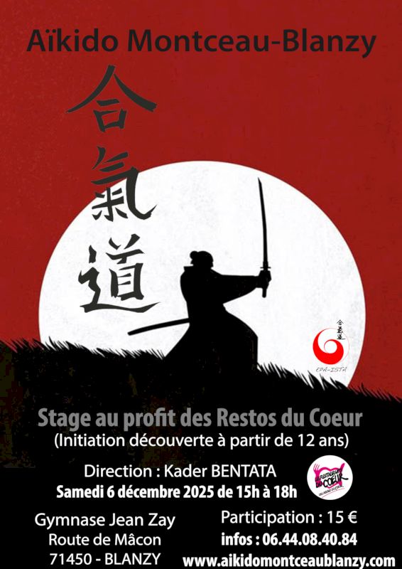 Ceci est un rappel au sujet du stage organisé par l’aïkido Montceau Blanzy au profit des Restos du Cœur de Montceau le samedi 6 décembre 2025.