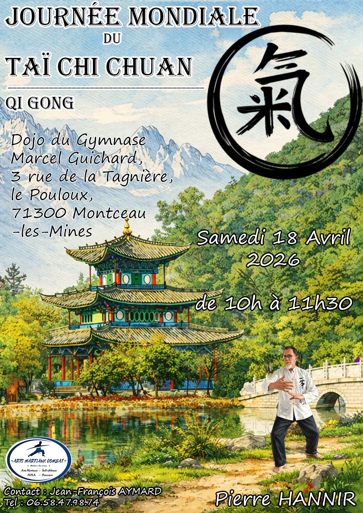 Un stage de Taïchi chuan et Qigong dans le cadre de la journée mondiale du Taïchi se fera le samedi 18 avril de 10h00 à 11h30, animé par Monsieur Pierre