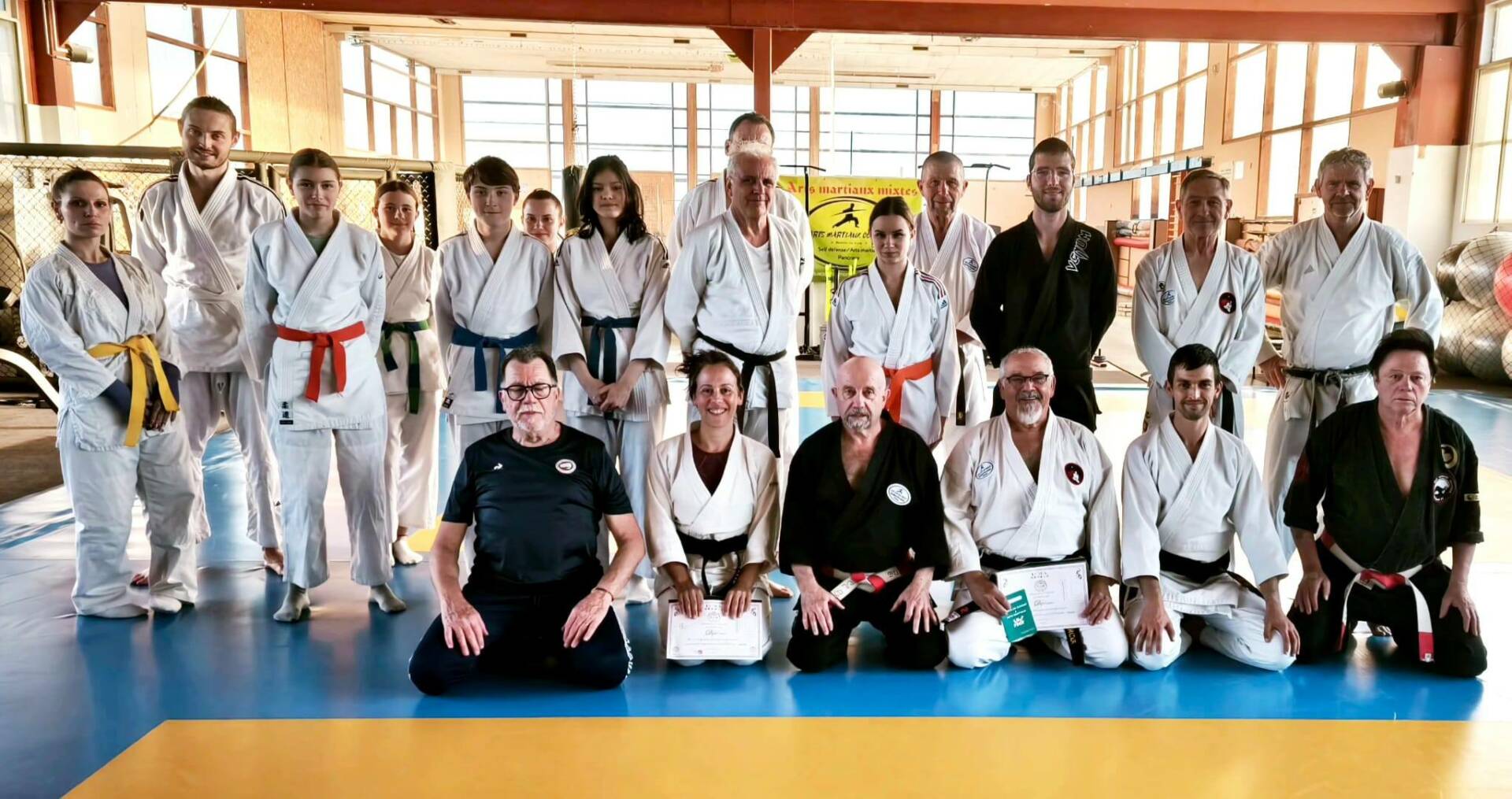 Ce diplôme vient ratifier l’évaluation réalisée sur plusieurs années et stages référents. Diplômes et ceintures ont été remis par le président et Senseï J.F. Aymard, en présence de cadres de l’association et de quelques élèves: J.P. Rondel, Eric Morin ,Nicolas Mercier et Pierre Hannir.
