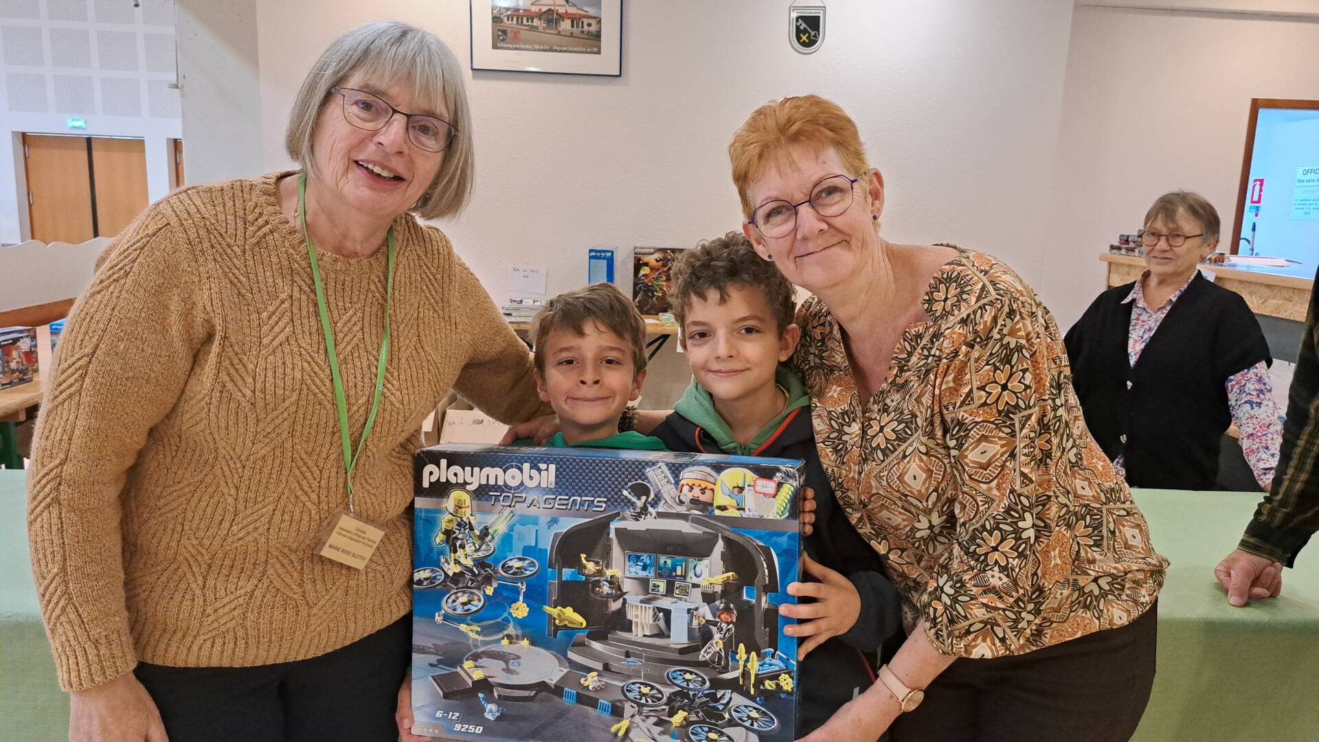 Plusieurs enfants ont eu la joie de repartir avec une jolie boîte de Playmobil offerte par l’association Christelle. Les sourires capturés sur les photos témoignent de leur bonheur et de la convivialité de l’événement.