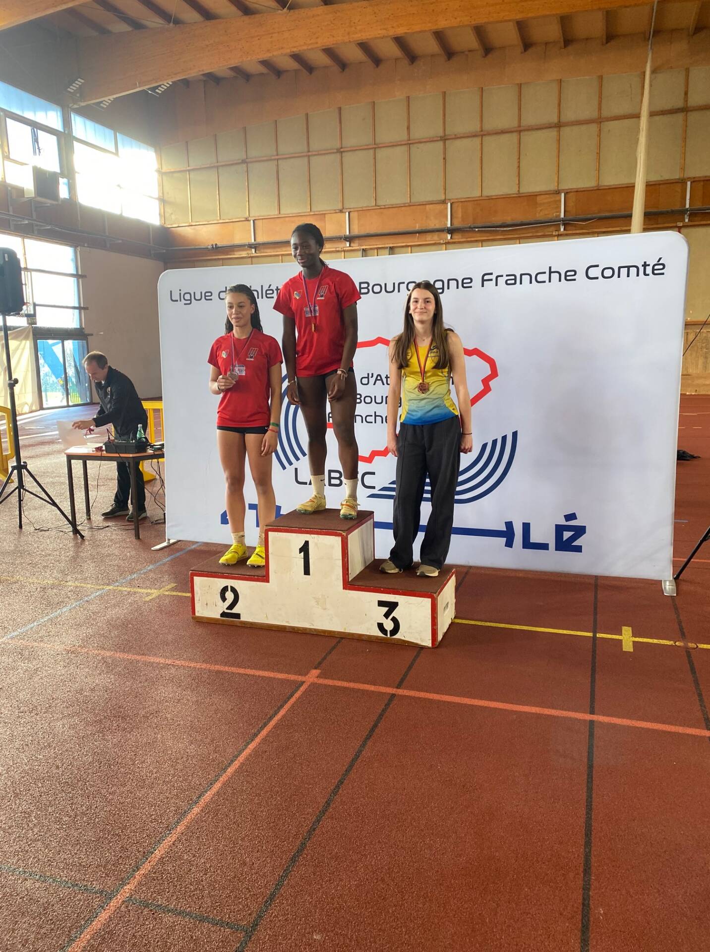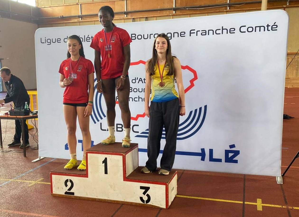 Maé Jeantet devient champion de Bourgogne du 50m (6’’50) mais aussi vice champion de Bourgogne du saut en longueur (5m66) et monte aussi sur le podium du triple saut (11m00) et du triathlon (108 points)