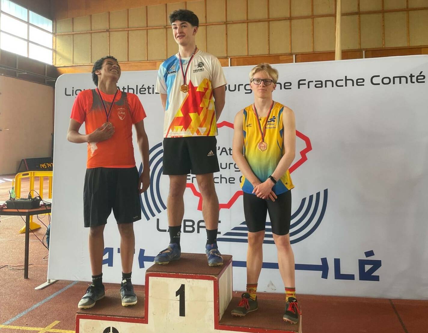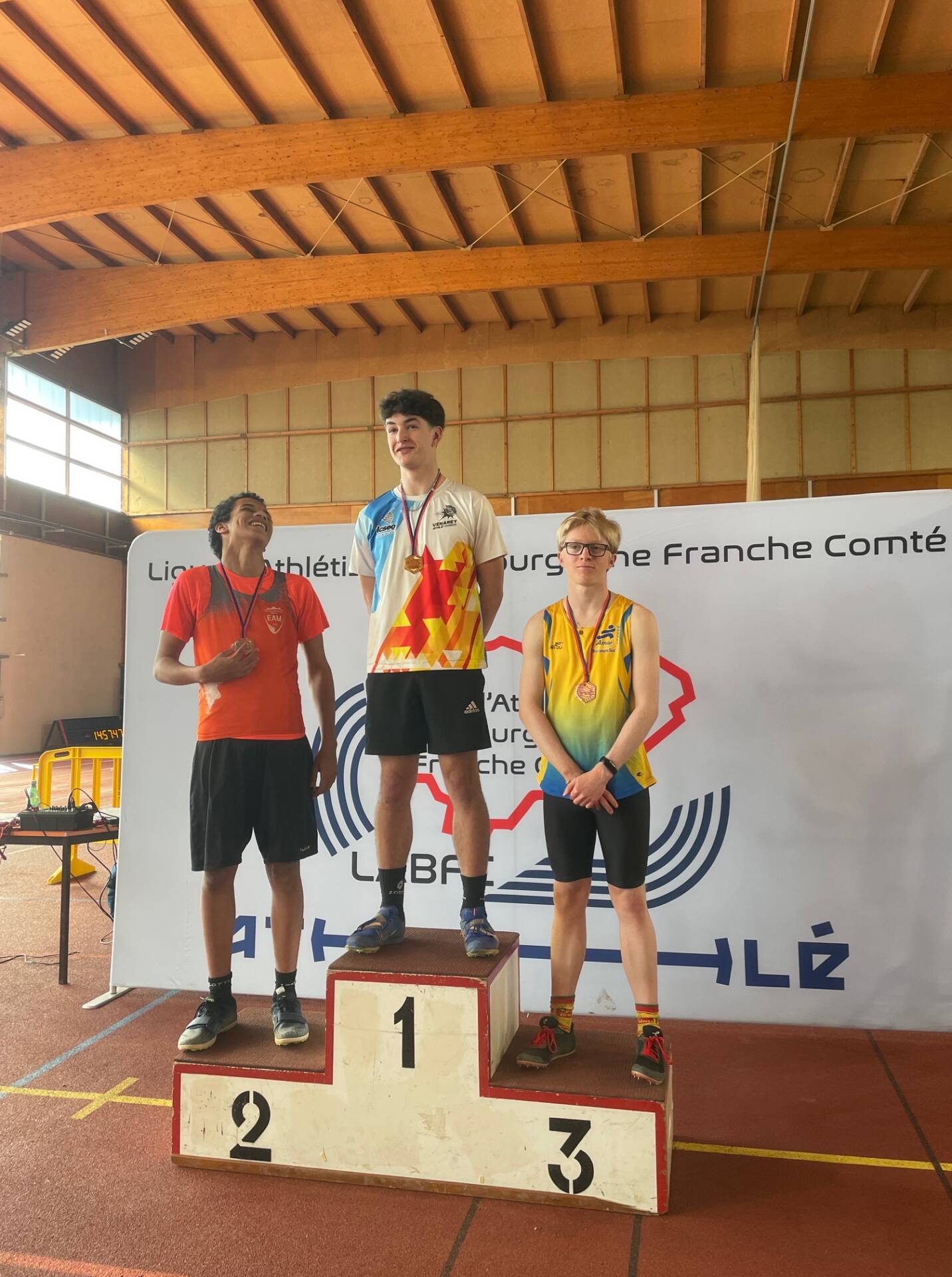 Sur 50m (7’’52), au saut en longueur (4m46) et au triathlon (92 points)