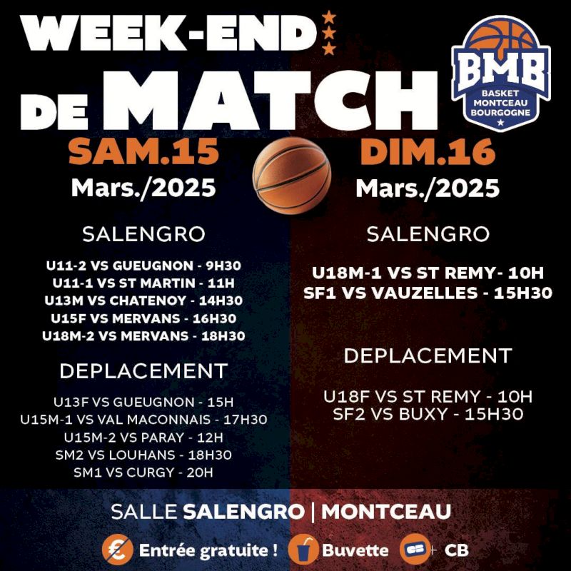 Après cette grande trêve des vacances d’hiver, quasiment toutes les équipes du Basket Montceau Bourgogne retrouvent le chemins des terrains ce week-end.