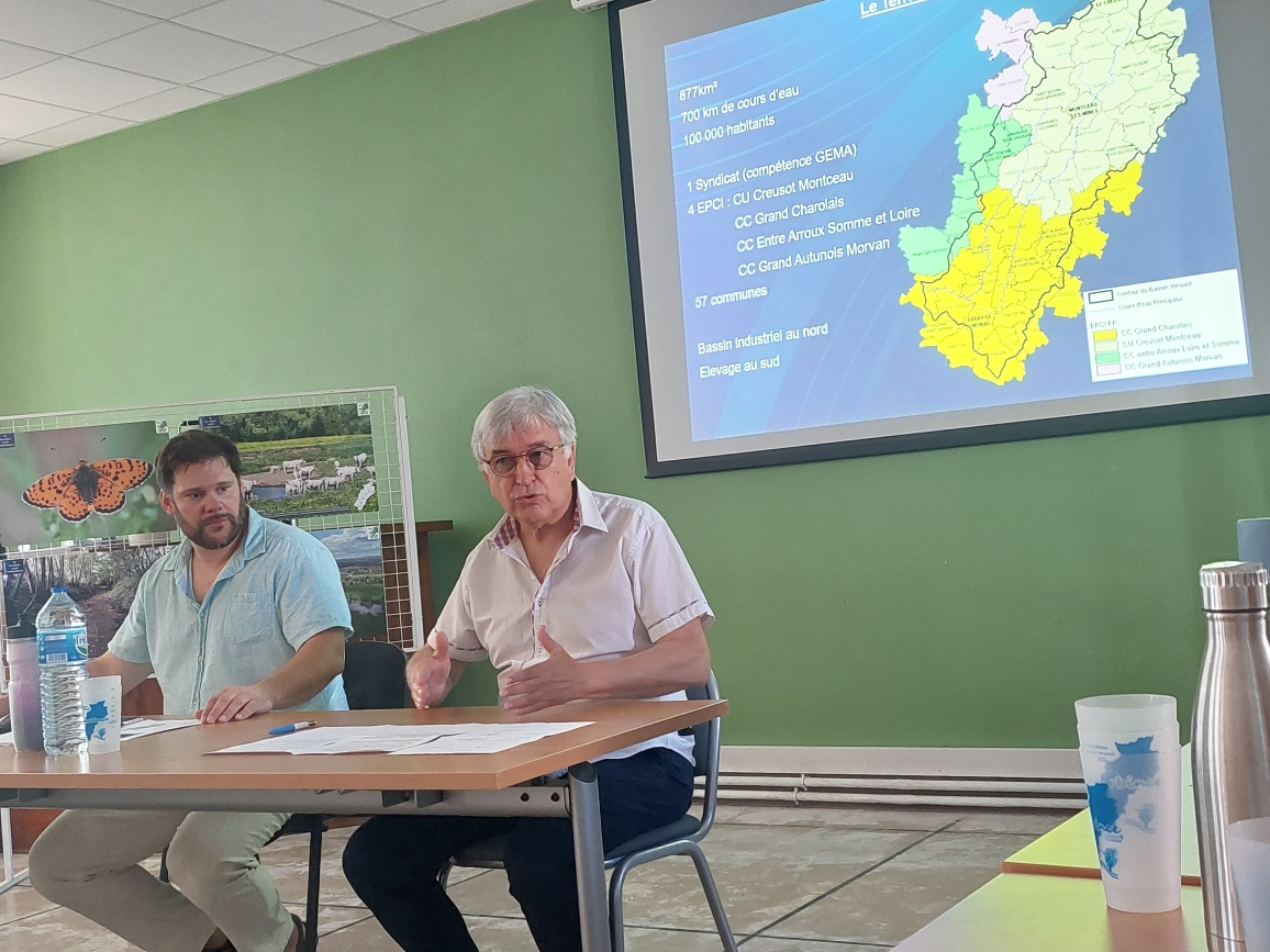 Trois ans après la signature à Ciry-le-Noble, le contrat territorial Bourbince a été renouvelé le syndicat de la Bourbince, l’Agence de l’eau Loire Bretagne et les acteurs, la CUCM, le Grand Charolais, Entre Arroux Loire et Somme, le Grand Autunois, le conservatoire d’espaces naturels de Bourgogne, l’observatoire de la faune de Bourgogne, la fédération départementale de pêche. Cette fois, c’est à Montceau-les-Mines, dans les locaux de la CUCM, que les partenaires se sont réunis pour lancer une nouvelle phase de ce plan ambitieux de restauration des cours d’eau. Moins d’élus présents, mais toujours autant d’enjeux autour de l’eau.