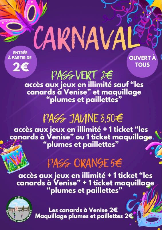 Nous vous réservons de belles surprises pour cet après-midi carnavalesque :