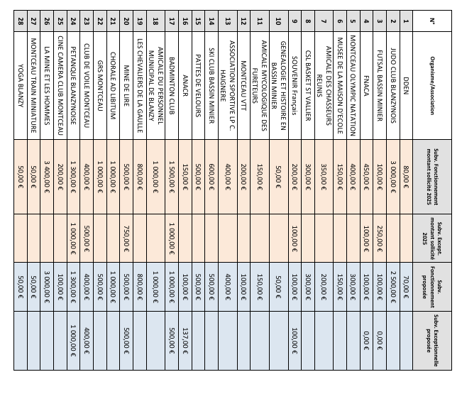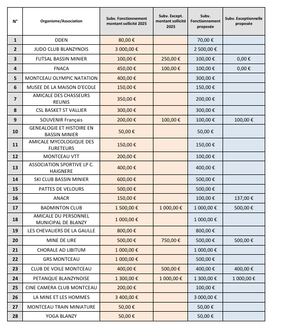 Au dernier conseil municipal de Blanzy, ont été votées les subventions aux associations dont voici le détail ci-dessous. Par ailleurs, suite au vote du budget primitif, le conseil municipal de procéder à l’attribution de deux subventions au CCAS :