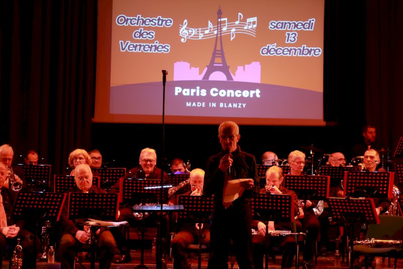 Samedi soir, à l’EVA, l’orchestre des Verreries de Blanzy a fait bien plus que donner un concert, il a ouvert une fenêtre musicale sur Paris, la plus belle ville du monde. Sous la direction inspirée de François Bordiau, le Glass Blowers Big Band a embarqué le public pour une visite enchantée, où Paris rime avec Blanzy et résonne comme le carillon du métro à l’heure de pointe. Attention, ça va démarrer… Le poinçonneur des Lilas donne le signal, et déjà l’on glisse sur la Seine, porté par une vue imprenable sur Le Temps des Cathédrales, merveilleusement interprété par Claude, grand amateur des P’tites femmes de Pigalle. Les notes s’enchaînent, familières et tendres, rappelant que Paris sera toujours Paris, tout comme Blanzy restera toujours Blanzy, fidèle à son orchestre des Verreries.