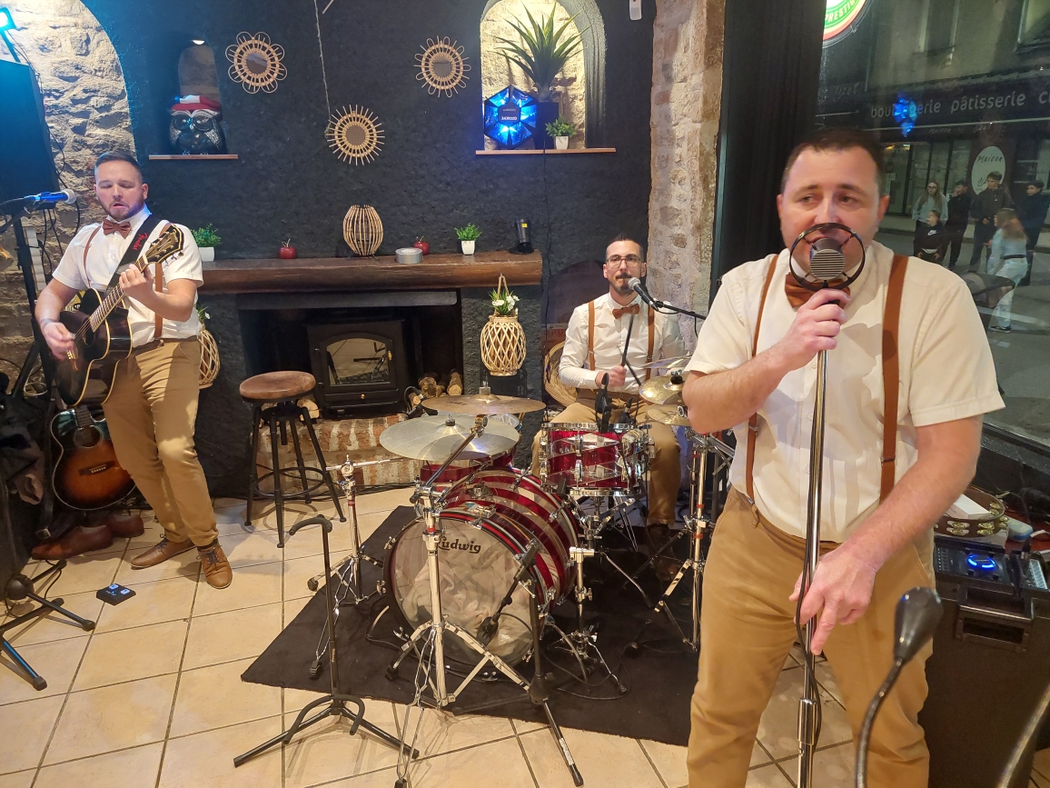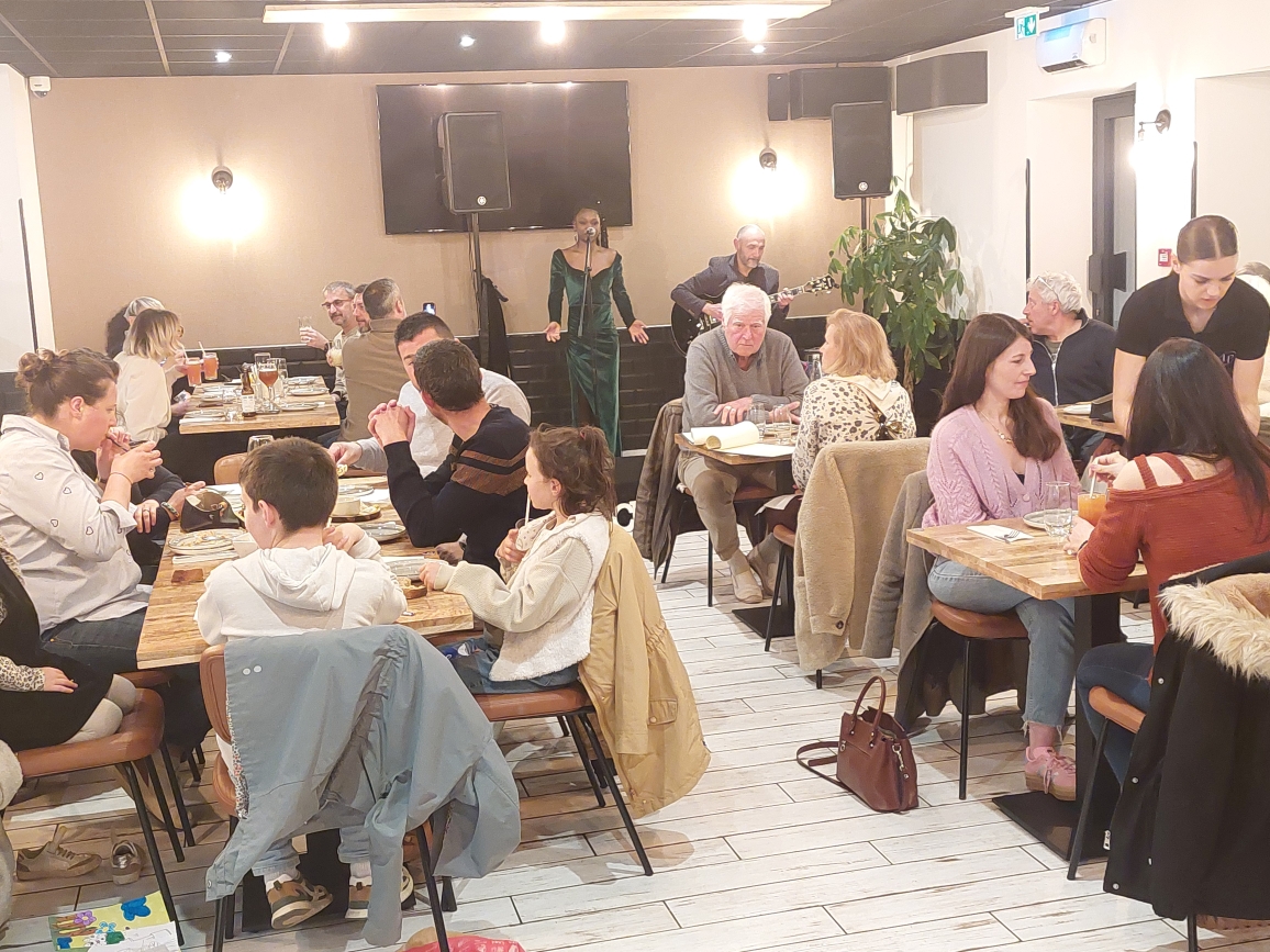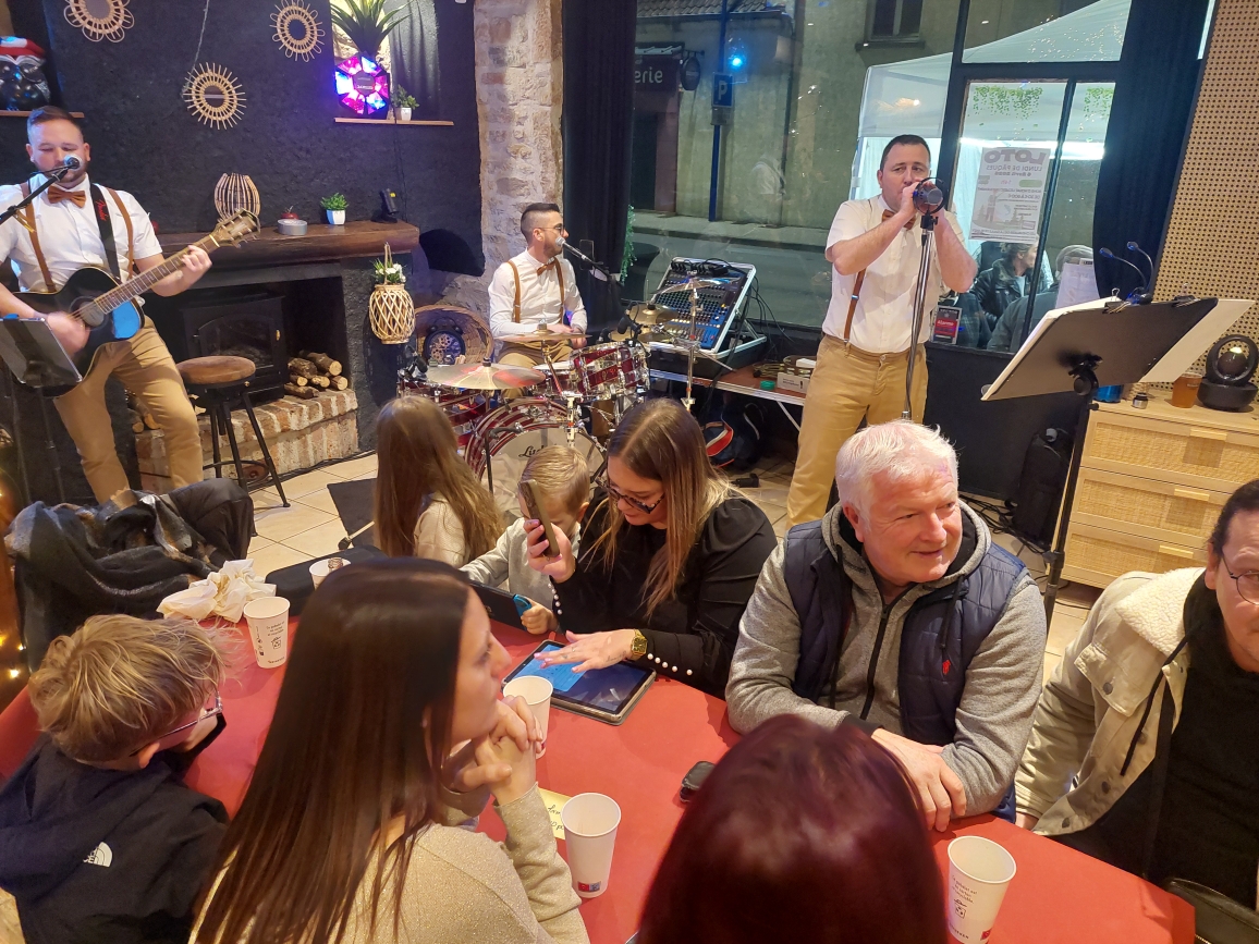 Et puis il y avait l’Encantada, le cœur battant de la soirée. L’endroit où l’on se retrouve, où l’on discute, où l’on oublie le quotidien. Virginie et Éric avaient vu les choses en grand. La rue de la République coupée à la circulation, barnums, brasero, ambiance chaleureuse et sourires partout. Sur scène, le trio Les Z’Acoustix a envoyé une énergie contagieuse et enchaîné les tubes intemporels devant une foule des grands soirs. Des gens qui chantent, qui rient, qui profitent. L’Encantada s’est transformée en véritable fête populaire.