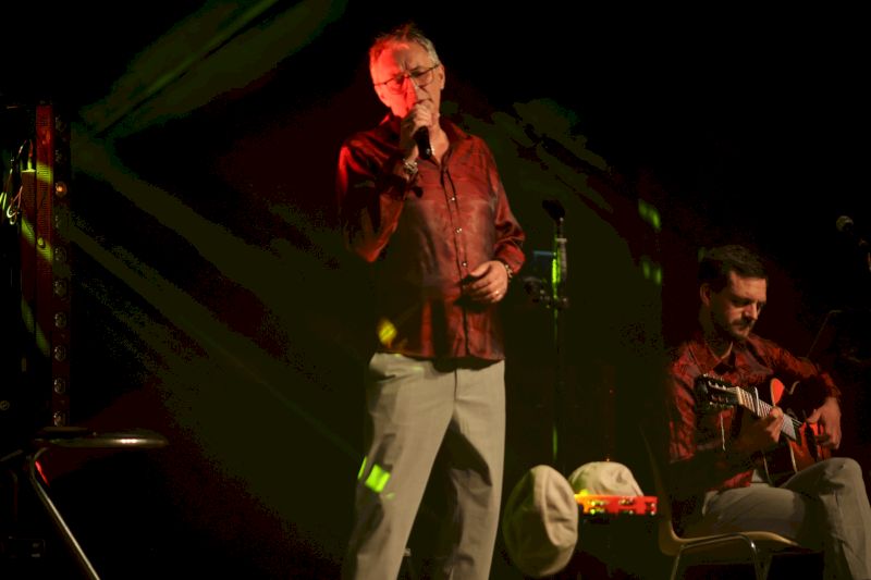 Régis cherche la note juste dans le micro.