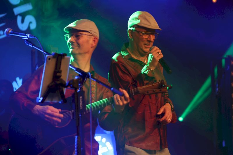 Sur scène, les Kev & Gis jouent.