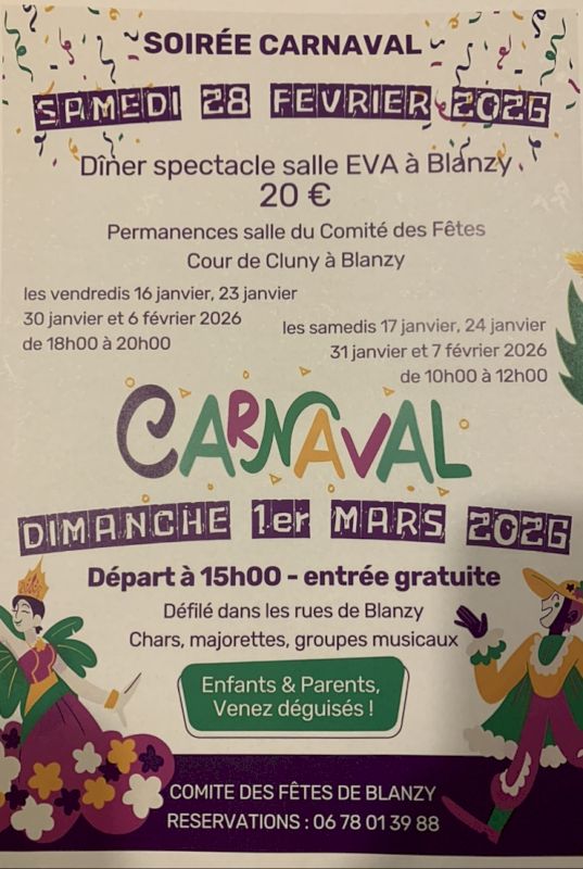 Voici pour la mise en bouche puisque le lendemain, dimanche 1er mars, gros plat de résistance et place au carnaval dans les rues blanzynoises à partir de 15h.