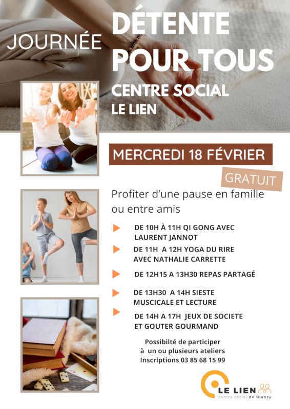 Dans le cadre de ses actions en faveur du bien-être et de la cohésion sociale, le Centre Social Le Lien de Blanzy organise une Journée Détente pour Tous, le mercredi 18 février.