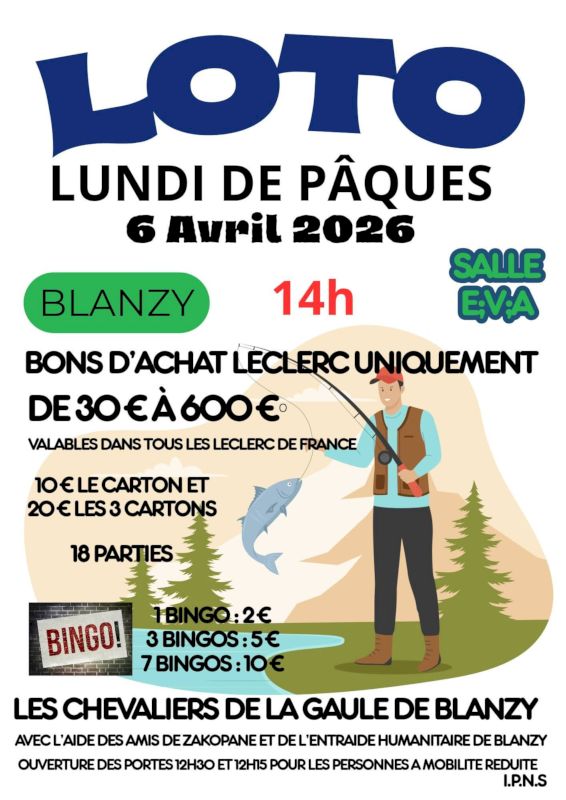Après la chasse aux oeufs de Pâques, le week-end ne s’arrête pas là puisque le 6 avril _ lundi de Pâques _ vous pouvez participer au loto à l’EVA (14h) organisé par les Chevaliers de la Gaule avec l’aide des Amis de Zakopane et de l’Entraide Humanitaire.