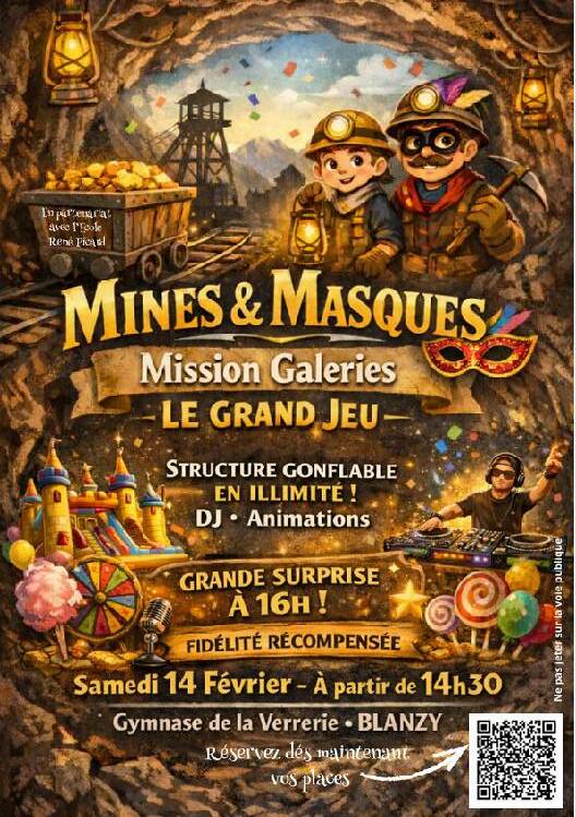 Une journée thématique immersive, placée sous le signe des mines, du jeu géant intergénérationnel et de la convivialité. Petits et grands seront invités à participer à une expérience ludique unique, pensée pour rassembler, surprendre et faire vibrer l’esprit du carnaval autrement.