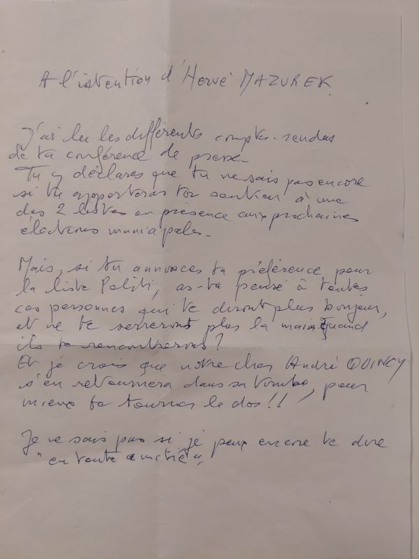 Au moment de refermer le livre de son mandat, Hervé Mazurek ne parle ni en stratège ni en homme d’appareil. Il parle en homme qui s’apprête à quitter une part de lui-même. Derrière les remerciements protocolaires et les rappels républicains affleure une émotion retenue, presque pudique. Il sait que, bientôt, on dira « l’ancien maire ». La formule est simple, mais elle sonne comme un passage de témoin.