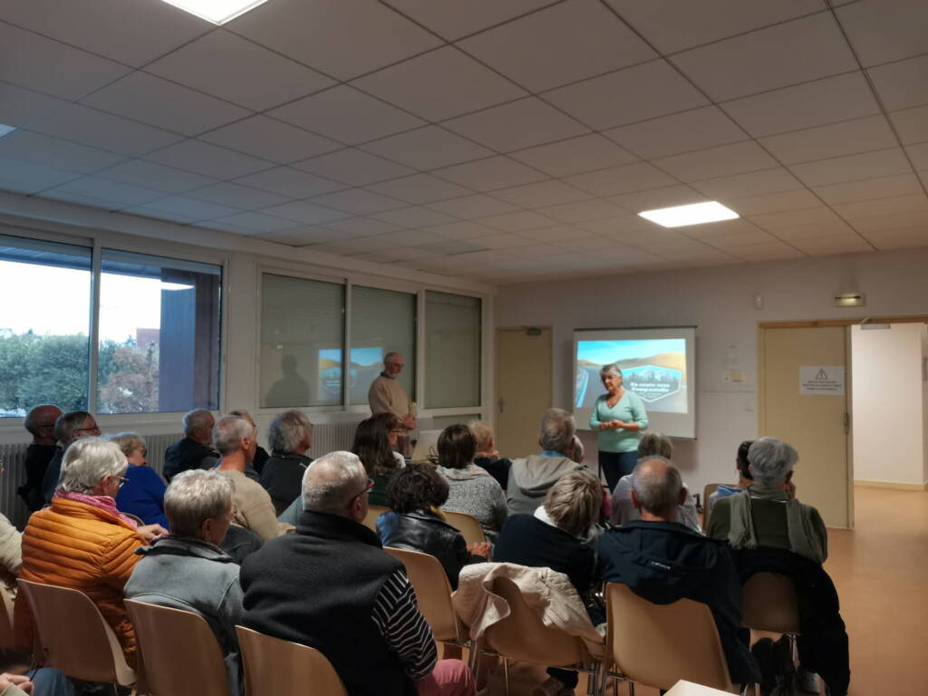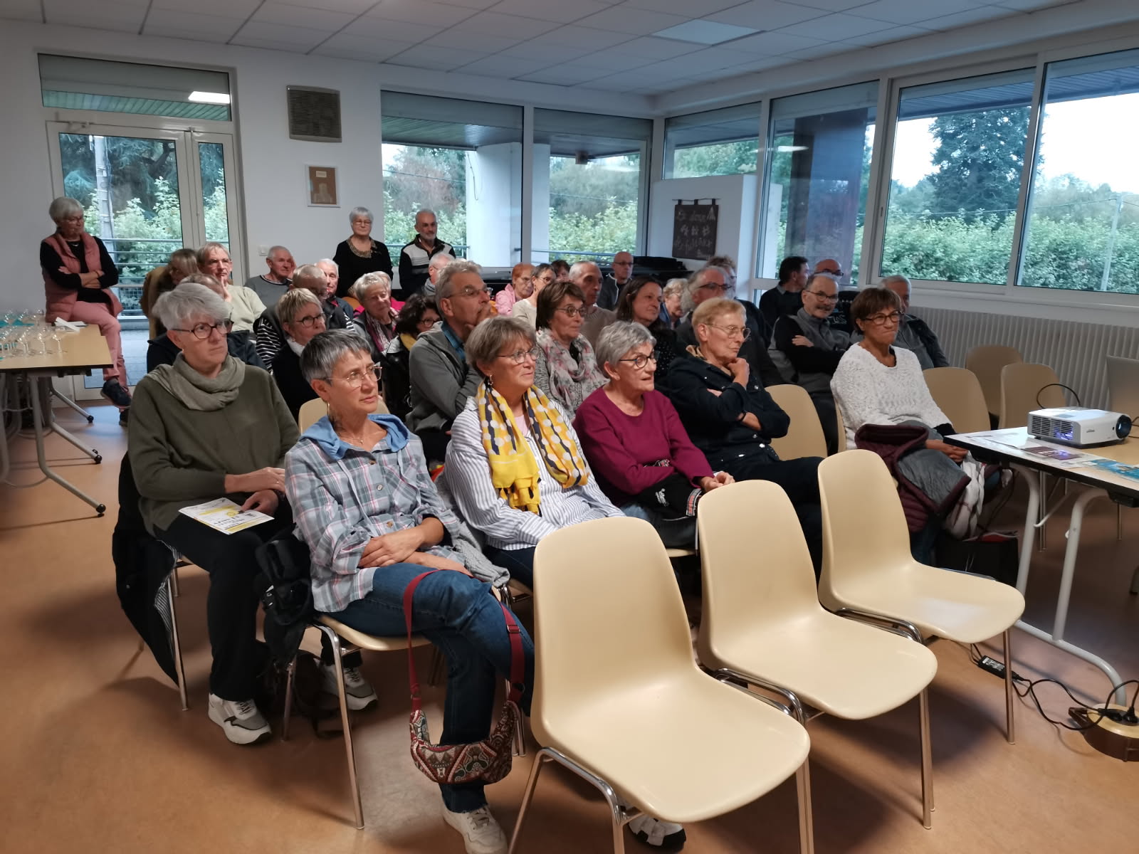 Vendredi soir, 40 personnes, individuels, membres d’associations de marcheurs ( les Pas Toqués et la Vouivre en Chemin), le Rotary Club, sont venus découvrir où redécouvrir une partie du périple de Michel Jolion sur les chemins de Saint Jacques de Compostelle