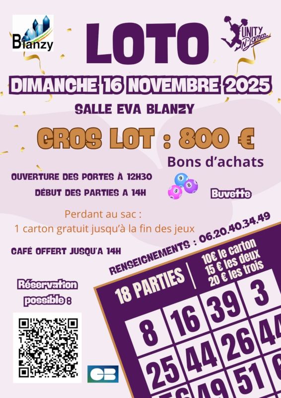 Unity N’Dance organise son loto à Blanzy le dimanche 16 novembre 2025 à la salle EVA.