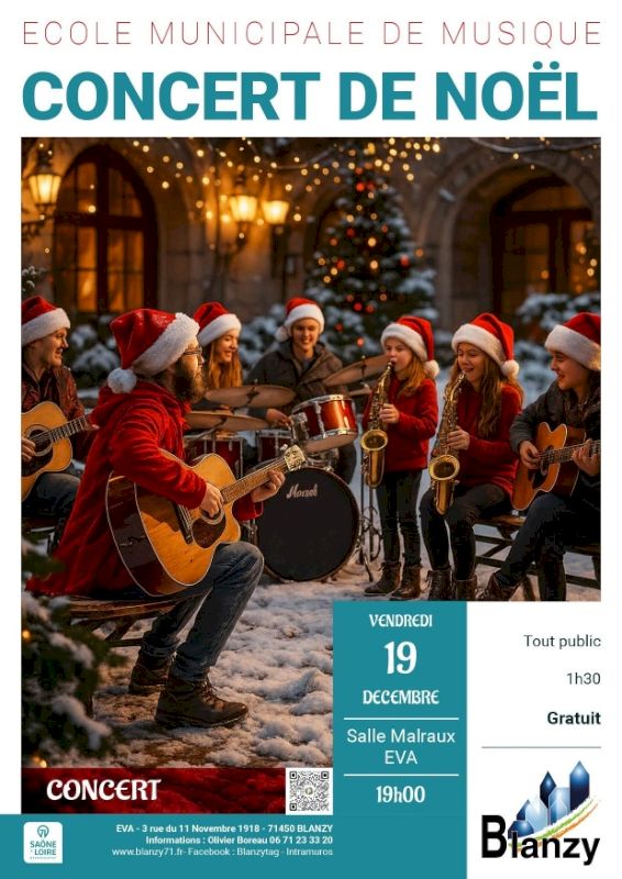 A l’approche des fêtes, l’école de musique de Blanzy vous invite le vendredi 19 décembre, à 19h00 salle André Malraux (Espace de Vie et d’Animation) à une soirée musicale aux couleurs blanche et rouge, une soirée sur le thème de Noël ; refrains célèbres ou à découvrir, les professeurs de l’EMM et leurs élèves vous proposeront un répertoire tout à la fois festif et chaleureux.