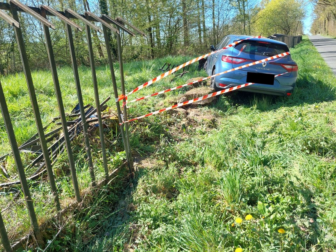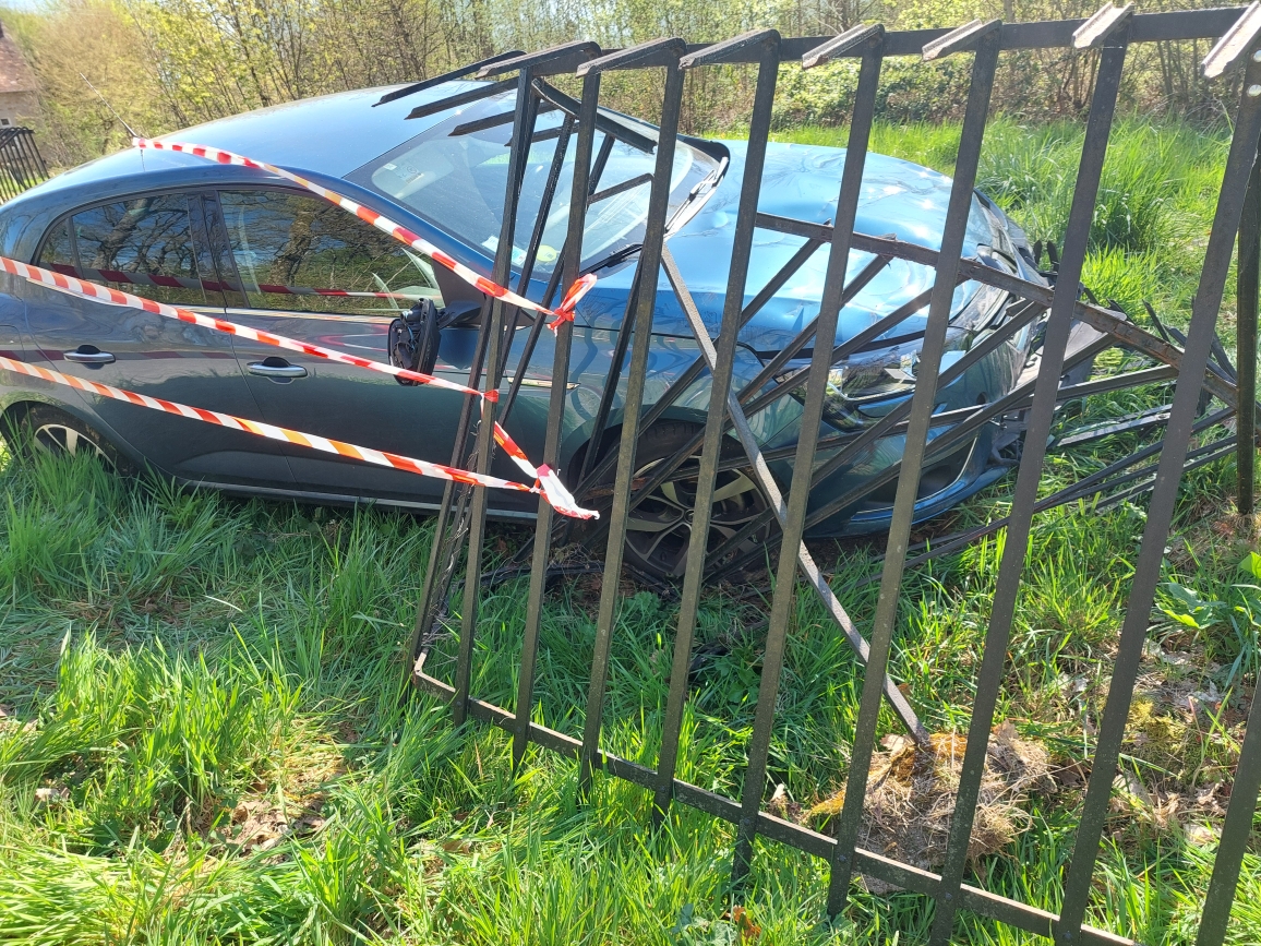 Le choc a été rude dimanche 5 avril dans l’après-midi lorsqu’un véhicule Renault Megane a quitté la chaussée, route des Thibourins à Blanzy avant de percuter la grille du parc du château du Plessis.