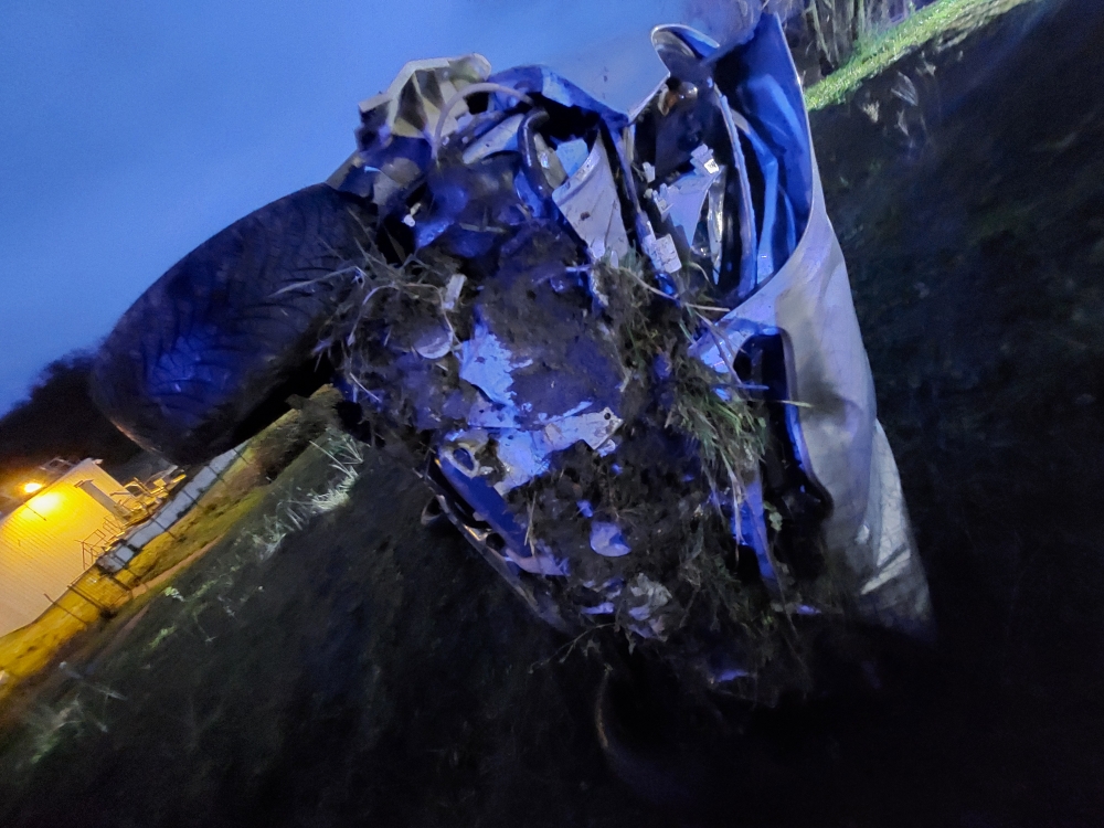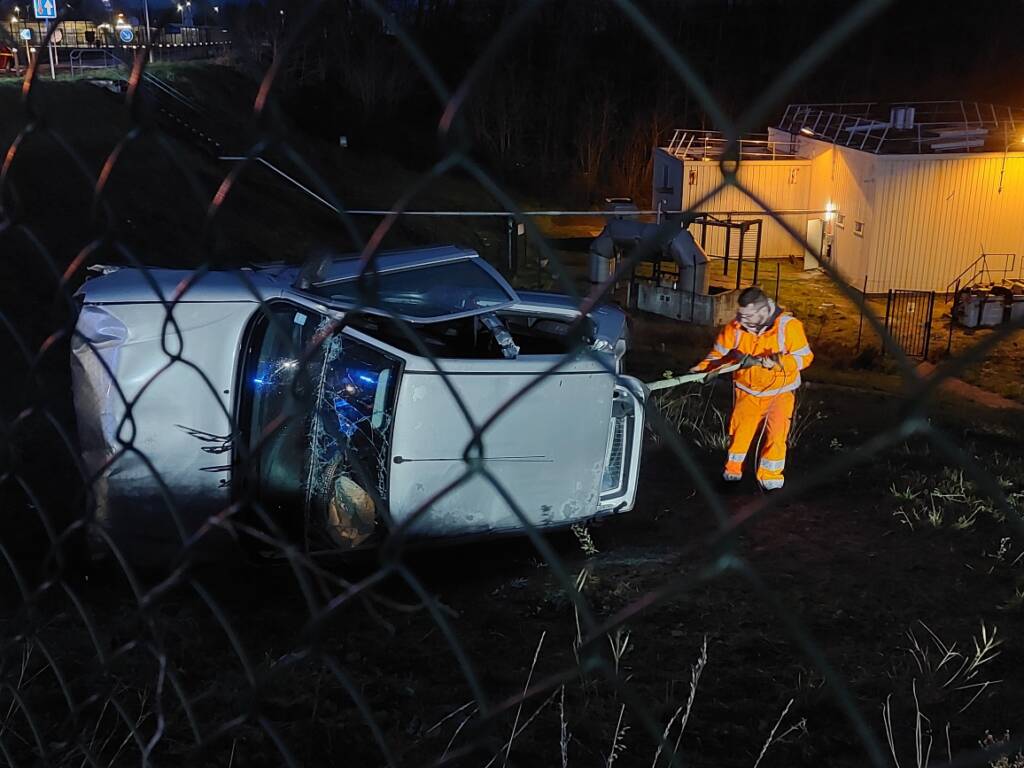 Une voiture avec cinq jeunes filles à bord a fait une violente sortie de route. Le véhicule a traversé la chaussée, sectionné un poteau électrique, pulvérisé une grillage et a fini sa course en contrebas dans l’espace de l’usine de traitement d’eau Michelin.