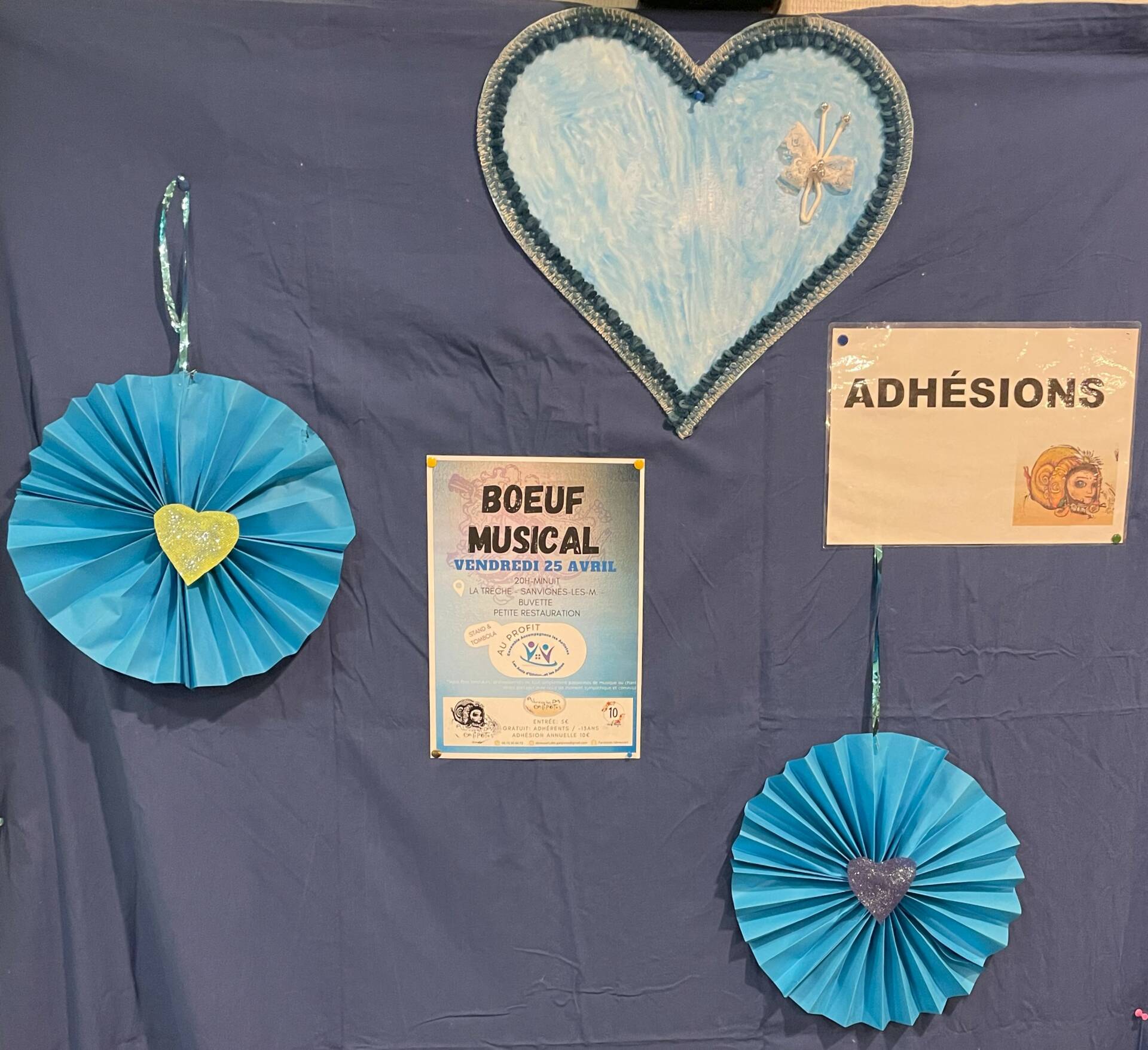 Communiqué – Ce vendredi 25 avril dans le cadre du mois de l’autisme, les Galipotes ont accueilli notre association au boeuf musical à la Trèche à Sanvignes. Le décor réalisé à notre attention par l’équipe des bidouilleuses a enchanté le public qui nous a, par ailleurs réservé, un chaleureux accueil, dans une ambiance festive, musicale et gourmande dans l’odeur des gaufres.
