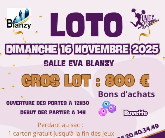 Blanzy – Un bon d’achat de 800 € au loto d’Unity N’Dance