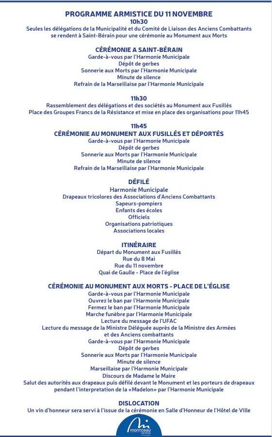 Voici les rendez-vous des différentes cérémonies du mardi 11 novembre 2025 :