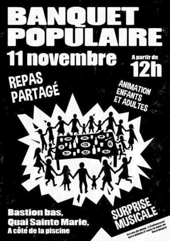 Communiqué – Un collectif de citoyennes et citoyens vous convie à un BANQUET POPULAIRE le MARDI 11 NOVEMBRE à partir de 12h au Bastion bas, Quai Sainte-Marie à Chalon-sur-Saône.