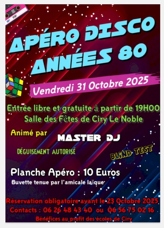 Un rendez-vous à ne pas manquer, vendredi 31 octobre à la salle des fêtes de Ciry-le-Noble où sera organisé un apéro disco des années 80.