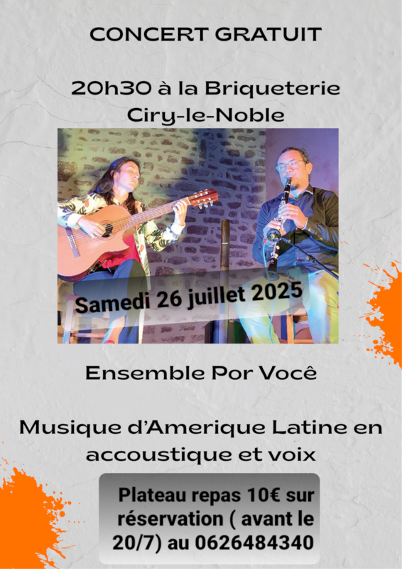 Concert à la briqueterie de Ciry-le-Noble le samedi 26 juillet 2025 avec l’ensemble Por Você, musique d’Amérique latine.