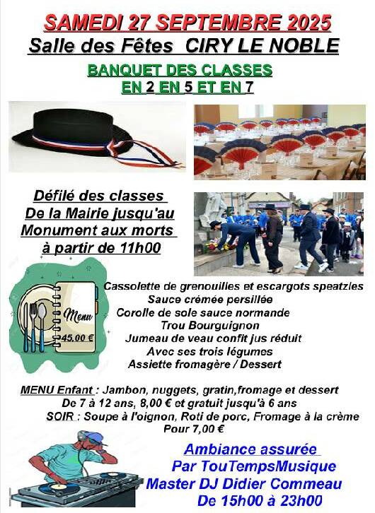 Cette année, les classes en 2, en 5 et en 7 de Ciry le Noble ont décidé de s’unir pour leur banquet de conscrits annuel pour les uns et décennal pour les autres, samedi 27 septembre 2025.