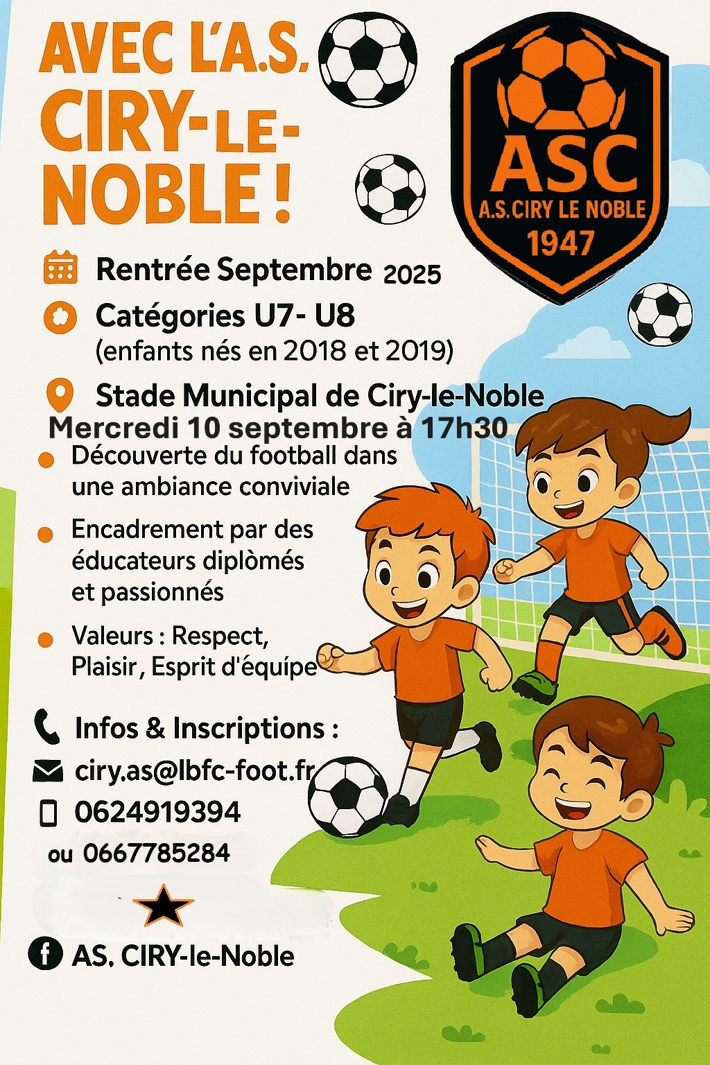 Reprise des sections jeunes du club de l’AS Ciry le Noble, elles auront lieu :