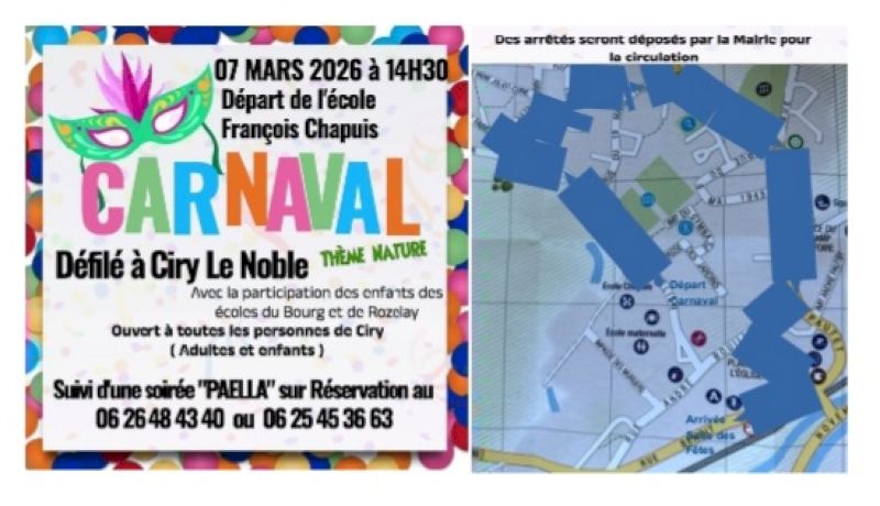 Le samedi 7 mars 2026, tout va commencer devant l’école François Chapuis à Ciry-le-Noble avec le départ du défilé. Tout est le bienvenu, enfants et adultes pour participer au carnaval.
