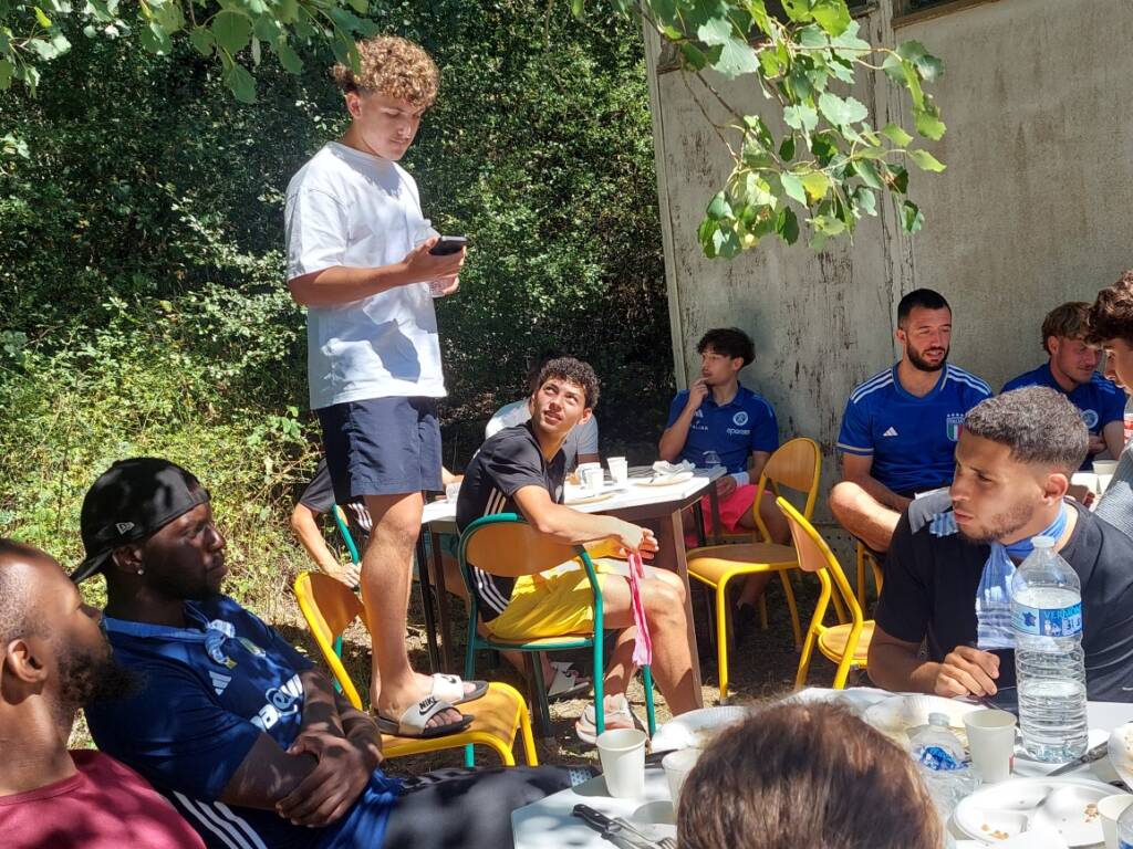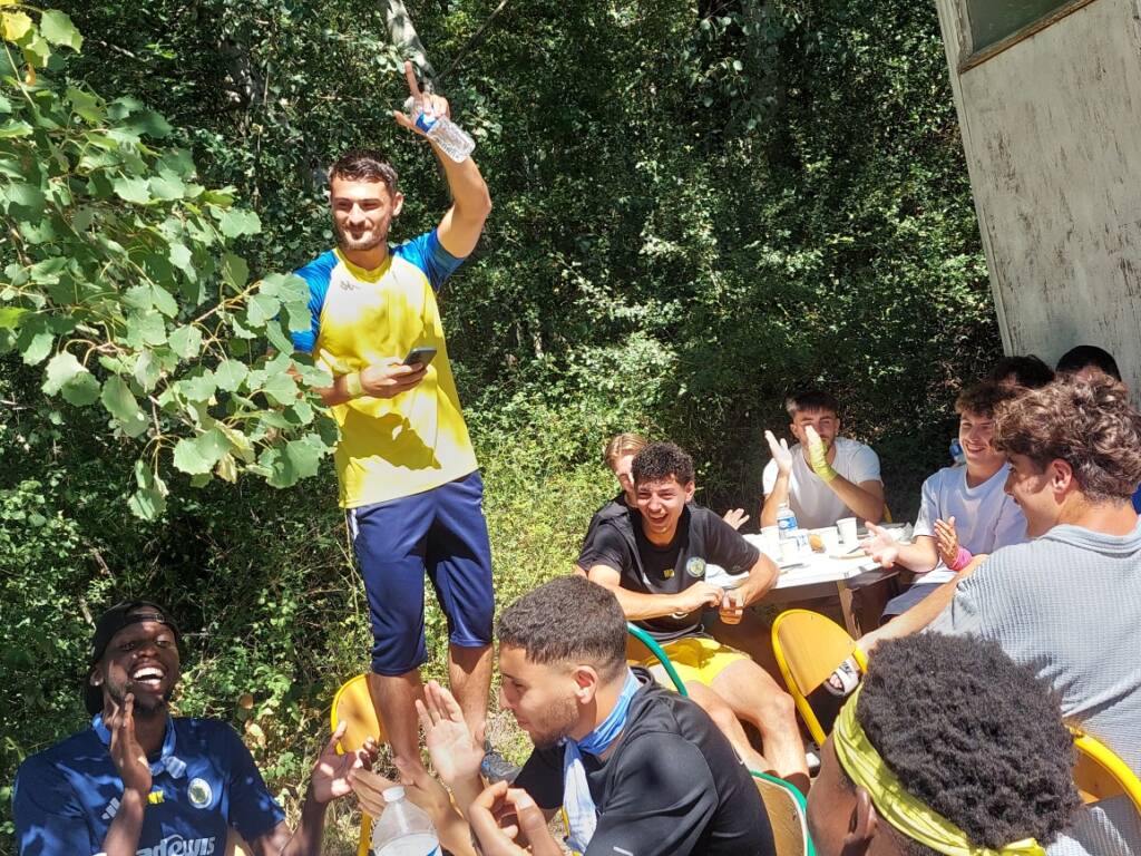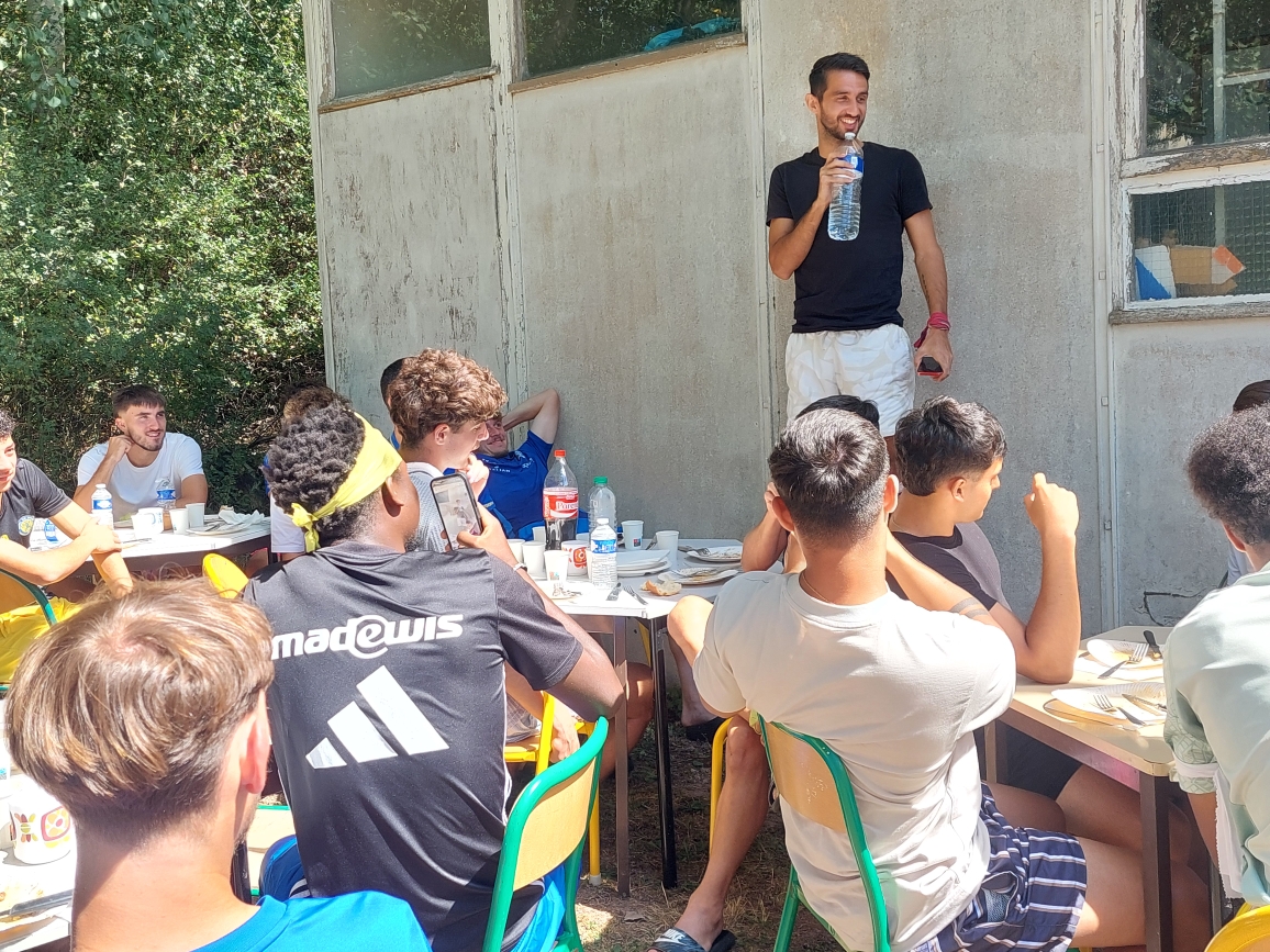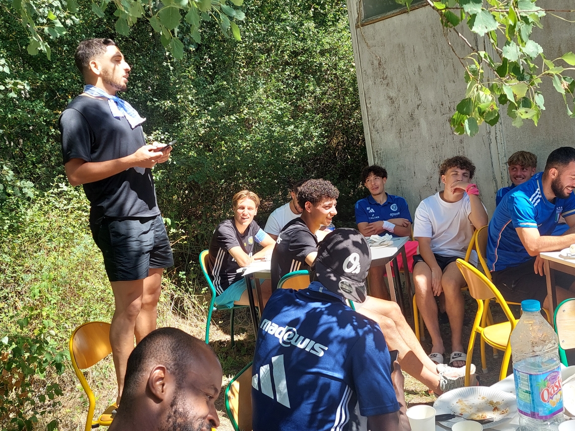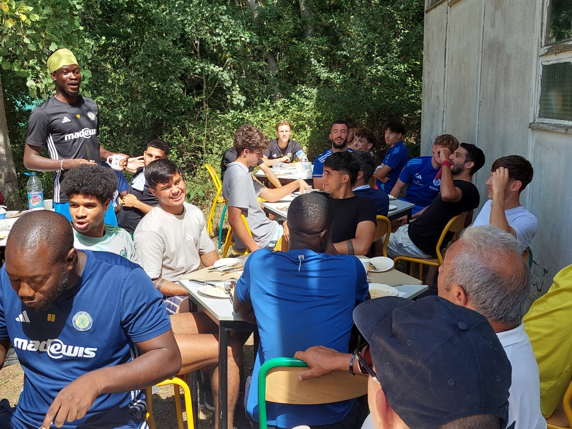 Moment incontournable dans la vie d’un vestiaire, le traditionnel bizutage musicale des recrues. À la fin du repas, debout sur une chaise, bouteille d’eau en guise de micro, chacun a donné de la voix. Parmi les nouveaux visages :