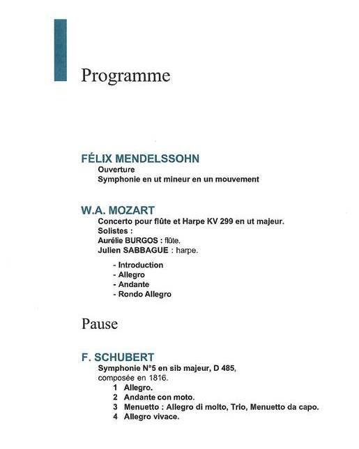 W.A. MOZART Concerto pour flûte et harpe (solistes Aurélie Burgos et Julien Sabbague)