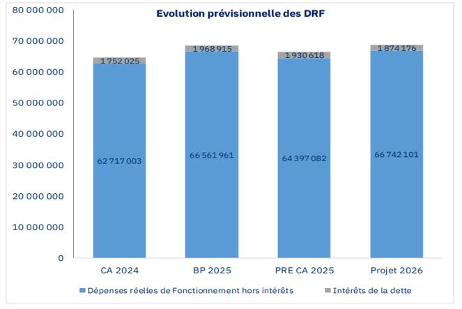 L’élaboration en cours du projet de budget 2026 fait apparaître une évolution des ratios moins favorable que les années précédentes, en raison notamment de l’anticipation de la poursuite de la participation de la collectivité au redressement des finances publiques. En sachant que d’autres incertitudes pèsent sur le budget de la collectivité, comme l’évolution des dépenses relative à la politique des déchets (TGAP…). L’ensemble de ces mesures ont un impact particulièrement négatif sur la situation financière de la collectivité. Toutefois, il est proposé, compte tenu du contexte actuel, d’intégrer une partie des mesures qui étaient envisagées conformément au respect du principe de sincérité budgétaire. Les conséquences réelles de la loi de finances pour 2026 seront intégrées au moment du vote du budget supplémentaire, à la faveur de la reprise des résultats du compte administratif 2025.