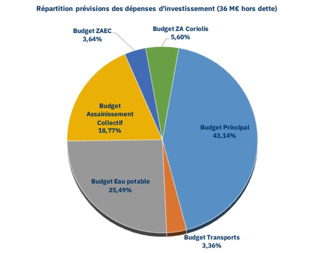 Enfin, le montant total des prévisions d’investissement, tous budgets confondus est de 36 M€.