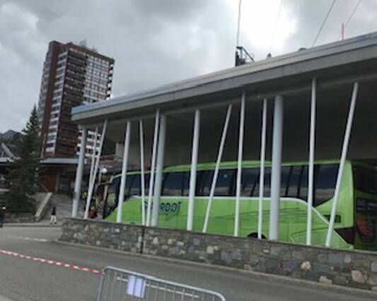L’office du tourisme de La Plagne, contacté quelques semaines auparavant par les organisateurs, avait très bien fait les choses en adressant une invitation pour une place de stationnement à la gare routière de « La Plagne Centre », à 1,5 km de la ligne d’arrivée, à une cinquantaine de mètres du passage des coureurs et de nombreux restaurants.