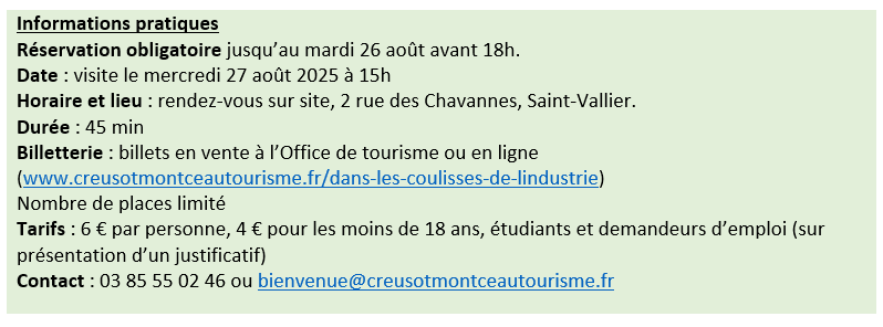 Mercredi 27 août, une nouvelle entreprise ouvrira ses portes dans le cadre du programme « Dans les coulisses de l’industrie » proposé par l’Office de Tourisme Creusot Montceau.
