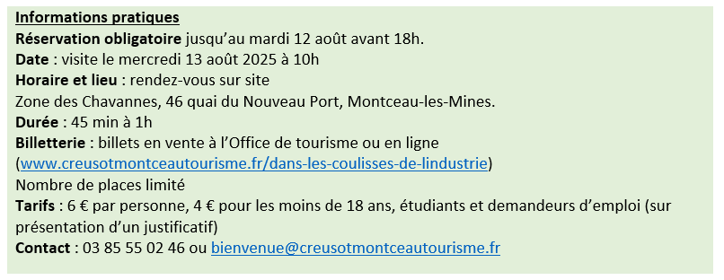 Le programme de visites d’entreprises « Dans les coulisses de l’industrie » initié par l’Office de Tourisme Creusot Montceau propose son prochain rendez-vous.