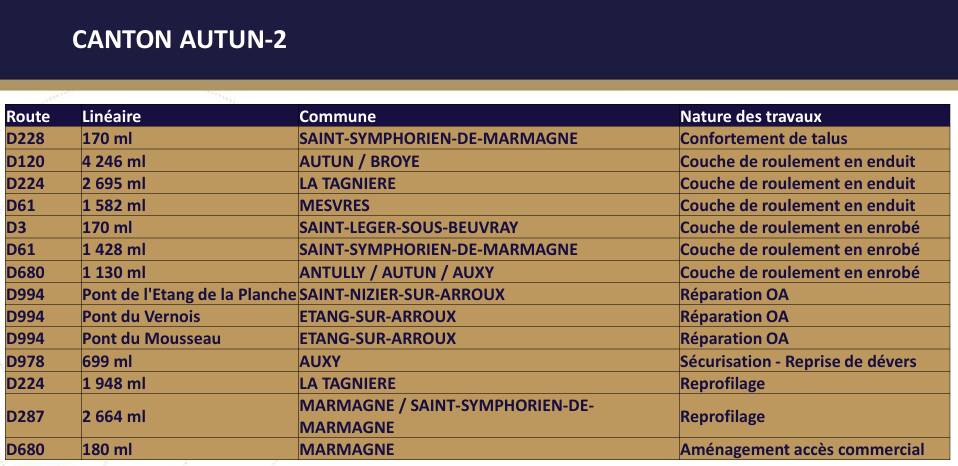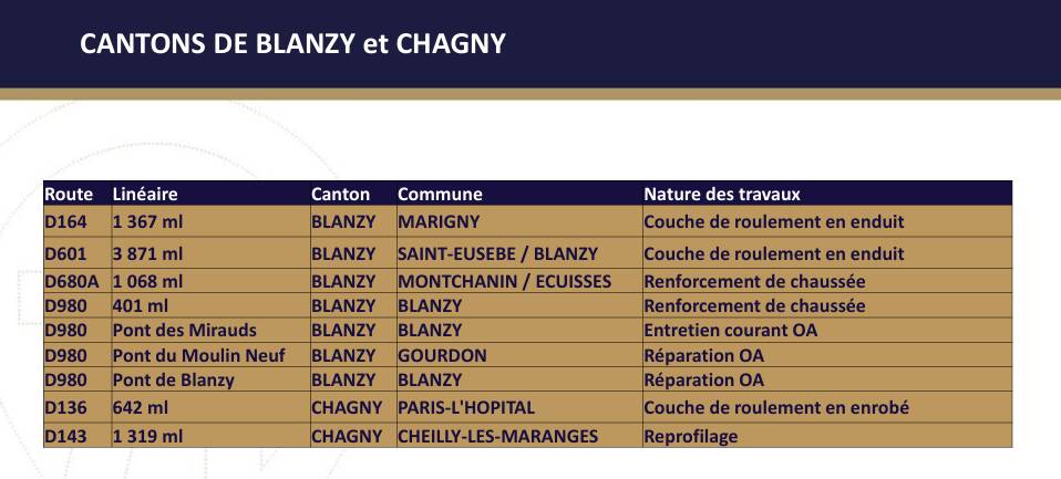 A Blanzy, Anthony Vadot, vice-président du Département chargé des finances et de l’administration, de l’aménagement et des aides aux territoires, des routes et des infrastructures, ainsi que de la RCEA, avait convié les élus des secteurs d’Autun, du Creusot et de Montceau, précisément pour évoquer la programmation des travaux routiers prévus en 2026 (voir les tableaux plus bas).